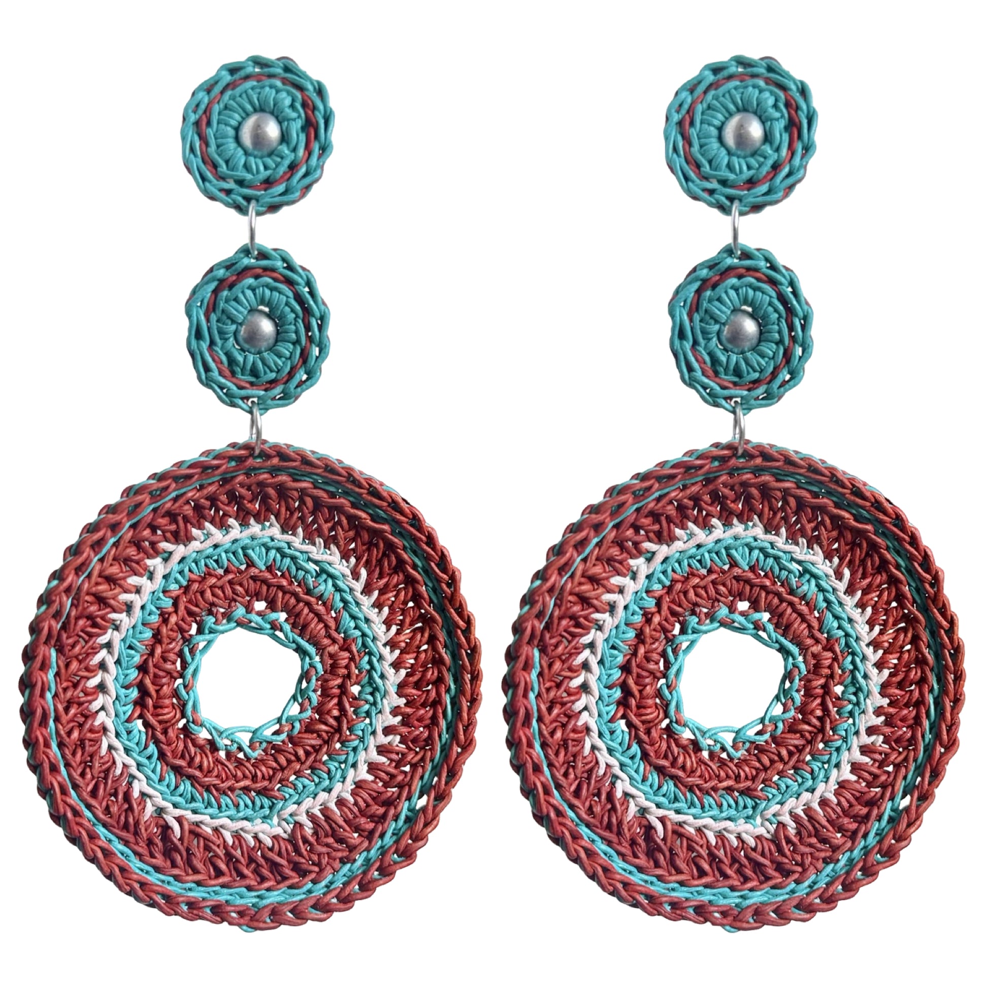 Their layered circles of turquoise, rust, and soft cream leather lace evoke the flow of wind, root, and wave — a harmony of movement and stillness.