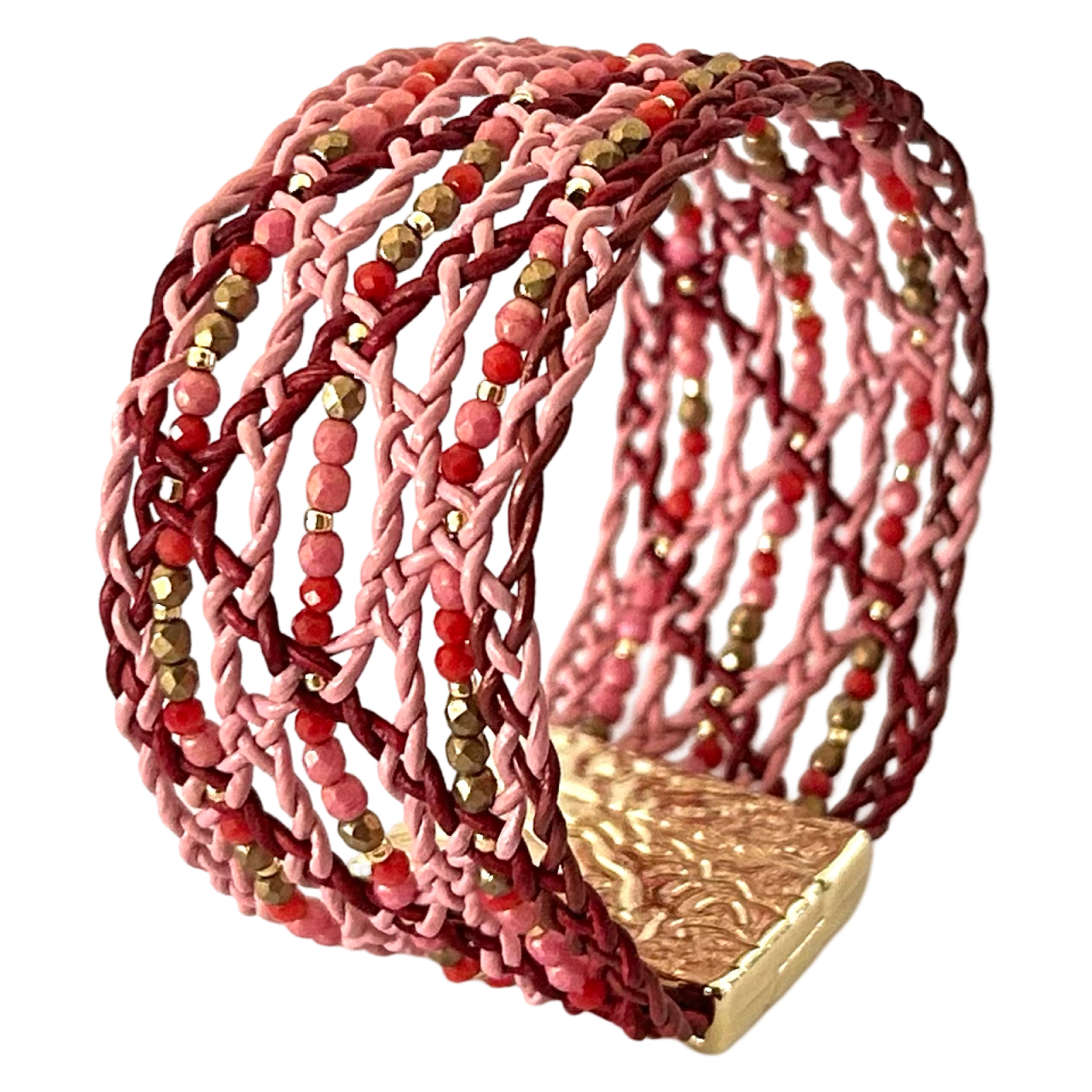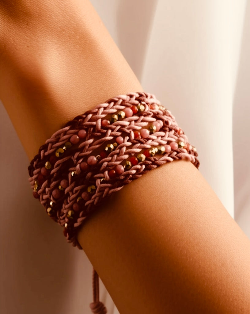 The Wild Rose Bracelet is crafted for the woman who feels deeply, loves fully, and lives in color. With layered blush, berry, and rose-toned leather, this bracelet speaks to the quiet complexity of feminine strength. It’s not loud, but it lingers—like the scent of petals or the warmth of a memory.