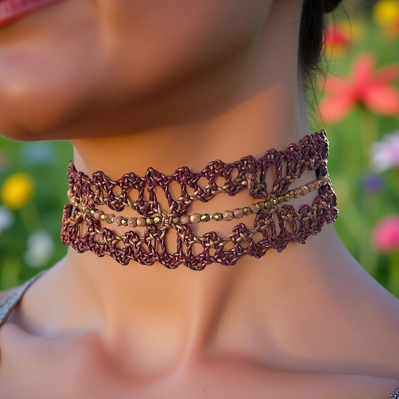 With warm leather tones and a grounded lace weave, the Grace Catcher choker wraps your neck like a soft talisman—a reminder of the strength in stillness, the power of rooted values, and the quiet protection of intentional beauty.