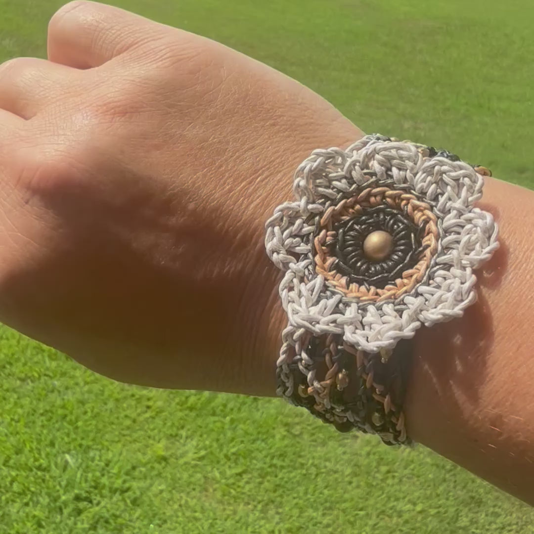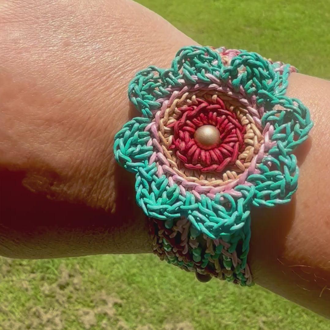 The Mandala Muse Bracelet is a celebration of becoming—handcrafted with vibrant Italian leather cords in a lace-inspired weave and centered with a mandala flower that symbolizes harmony, wholeness, and the beauty of the present moment.