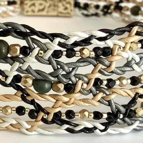• Materials: Italian leather cords, fire-polished crystals, Picture Jasper mini gemstone beads