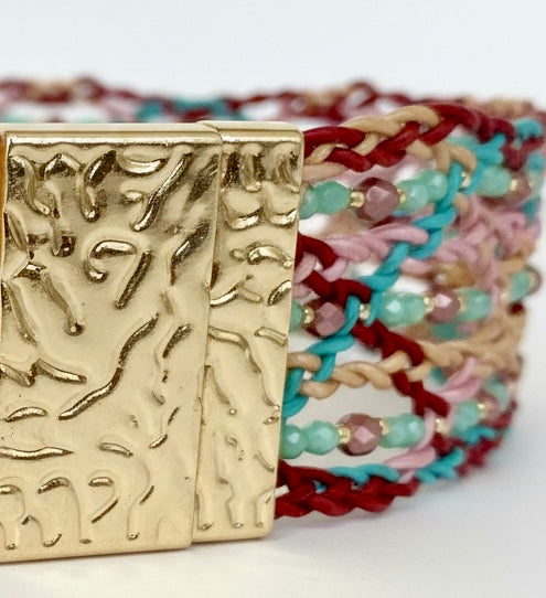 The Mandala Muse Choker is a tribute to quiet strength and radiant softness. Handcrafted with colorful Italian leather lace, Bohemian fire-polished crystals, and Picture Jasper gemstones, it weaves old-world craftsmanship with soulful artistry. A touch of poetry for your neckline—rooted in intention, alive with color, and made to move with you.