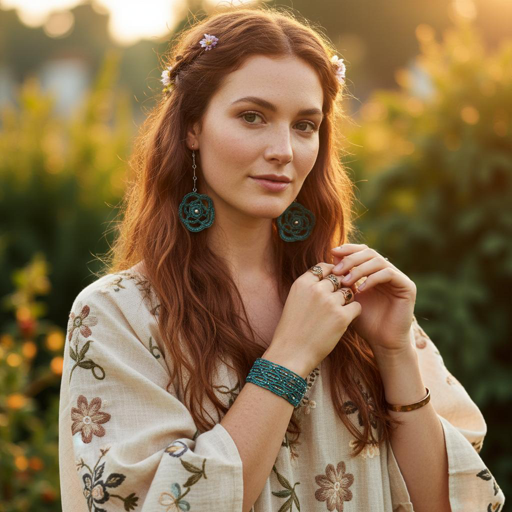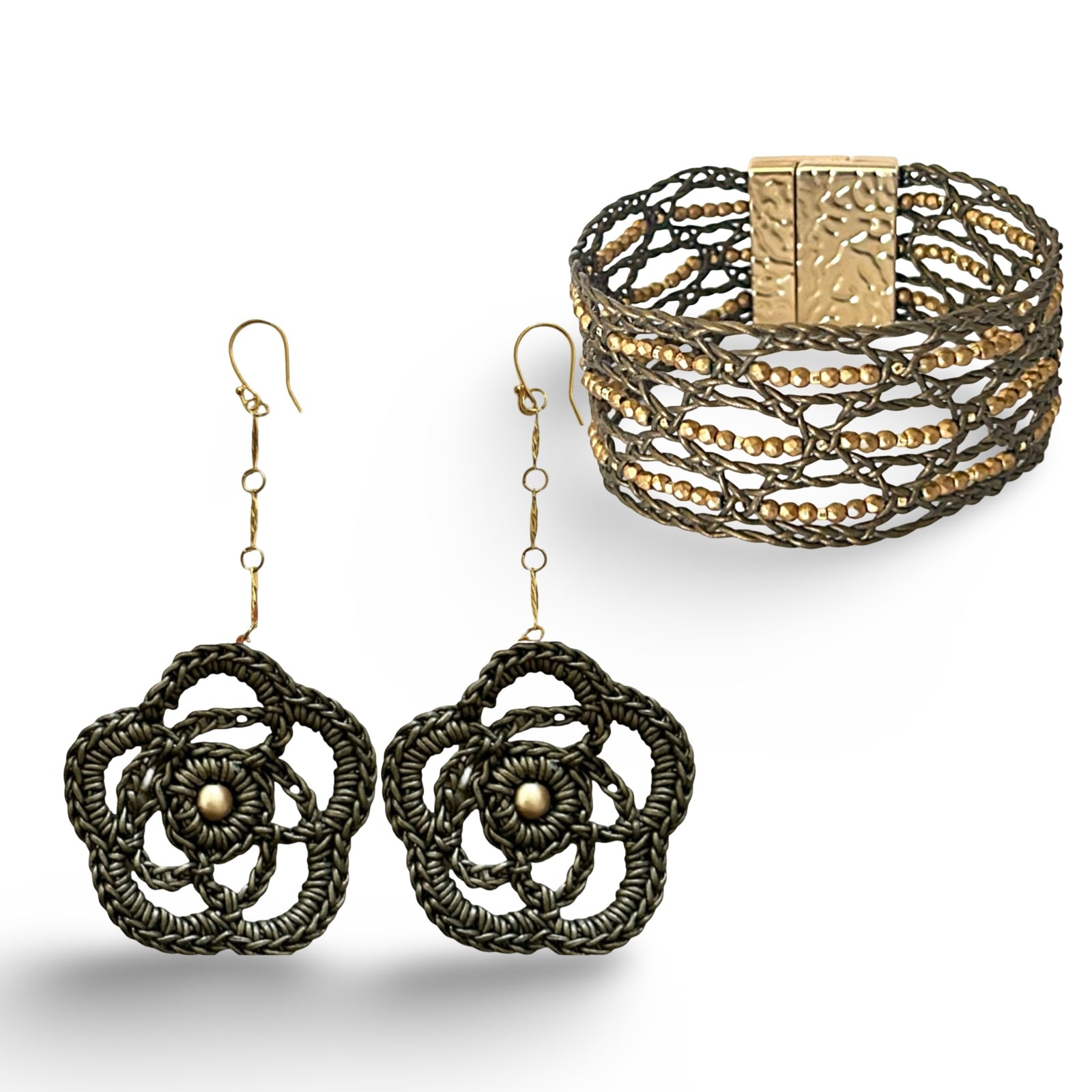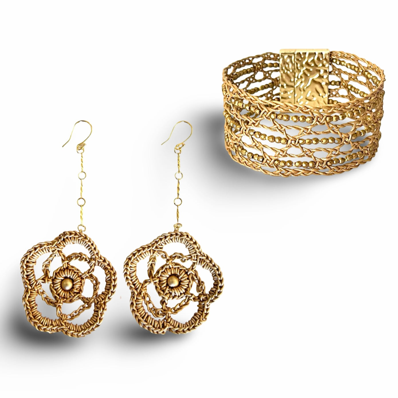 The Starter Statement Bundle brings together two Spirited Grace icons — the Shimmering Lace Bracelet and the Wildflower Whisper Earrings — for a gift that glows with artisan spirit and effortless beauty.