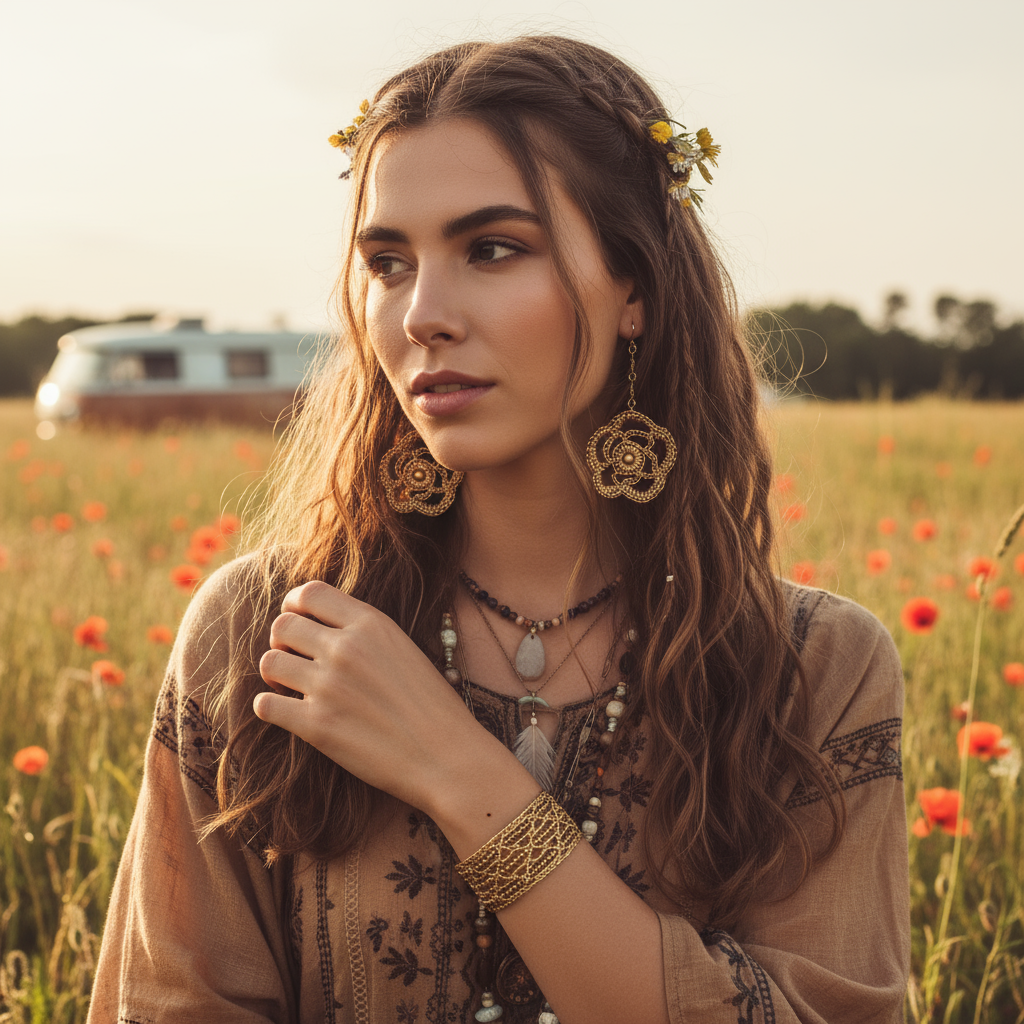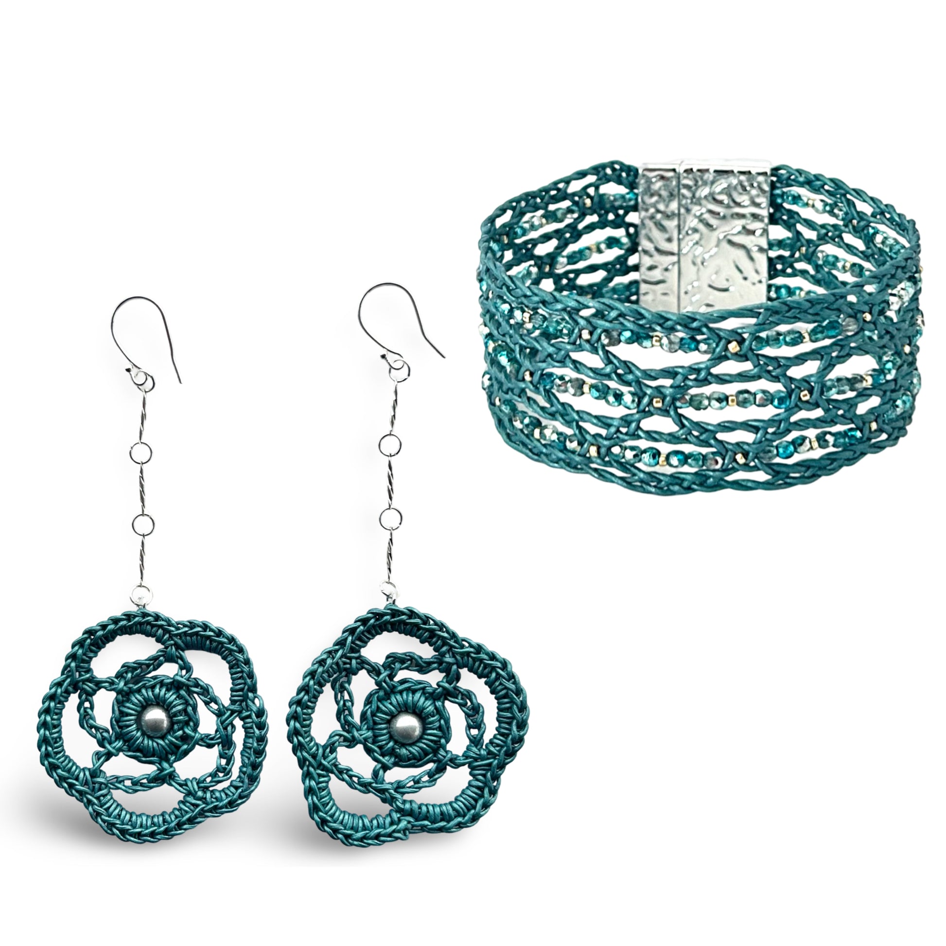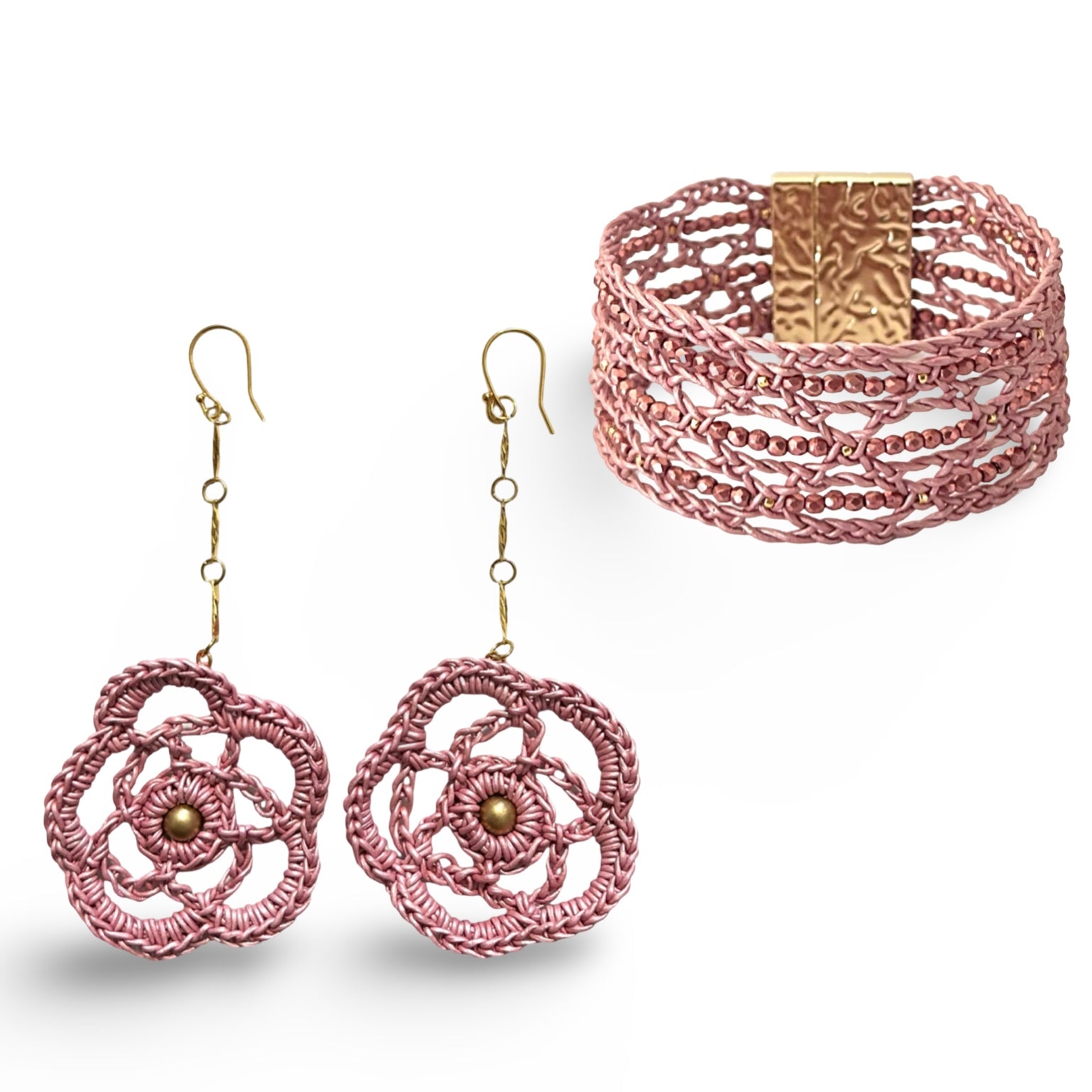 The Starter Statement Bundle brings together two Spirited Grace icons — the Shimmering Lace Bracelet and the Wildflower Whisper Earrings — for a gift that glows with artisan spirit and effortless beauty.